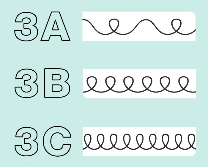 Chopstick-sized curls, somewhere in between curly and coily. This hair type tends to have more volume than the other 3s thanks to its tighter structure.